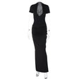 Deep V Short Sleeve Solid Color Hot Girl Style Pleated Long Dress - Black / S is backordered and will ship as soon as it is back in stock.