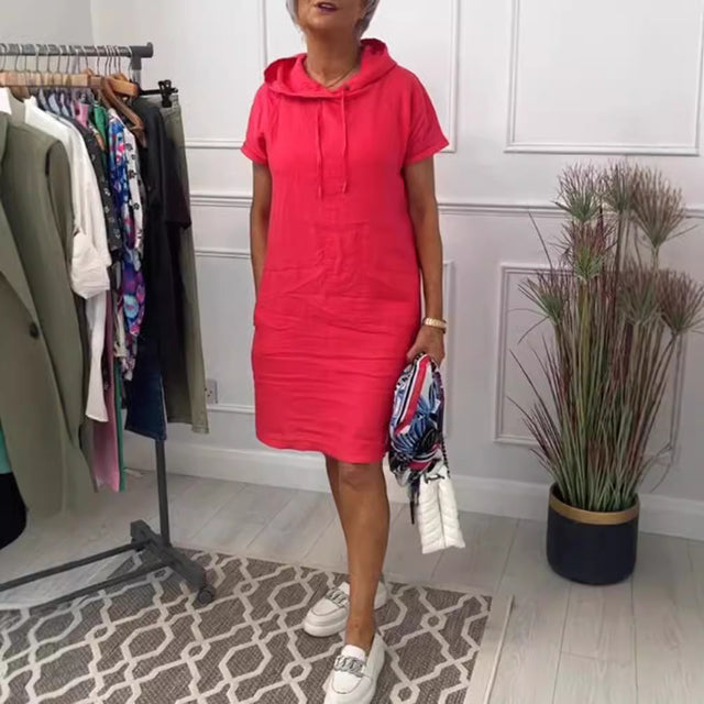 Fashion Solid Color Pocket Short Sleeve Hooded Dress
