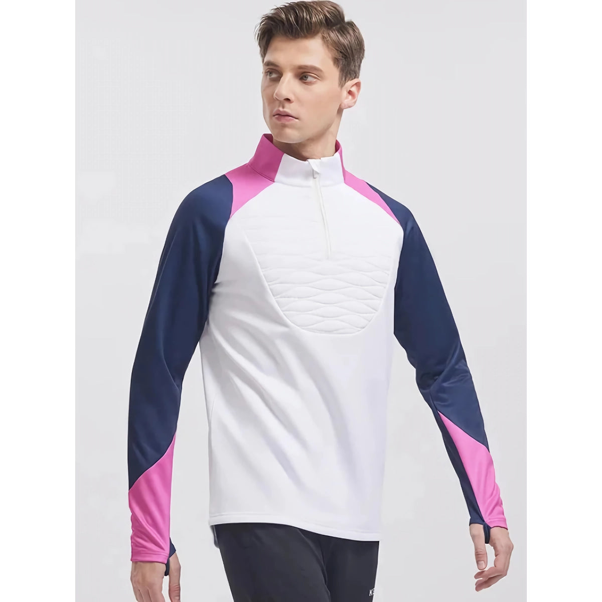 Men's Half-Zip Quilted Sports Pullover – Contrast Color Training Sweater