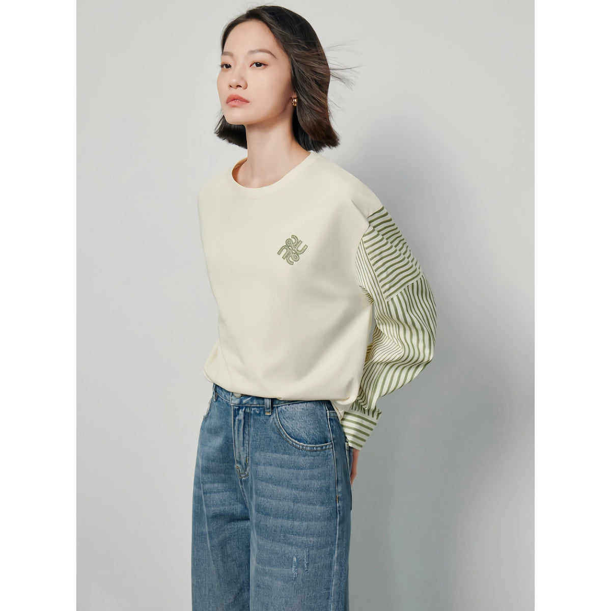 Women’s Contrast Color Patchwork Pullover - Spring Sweatshirt
