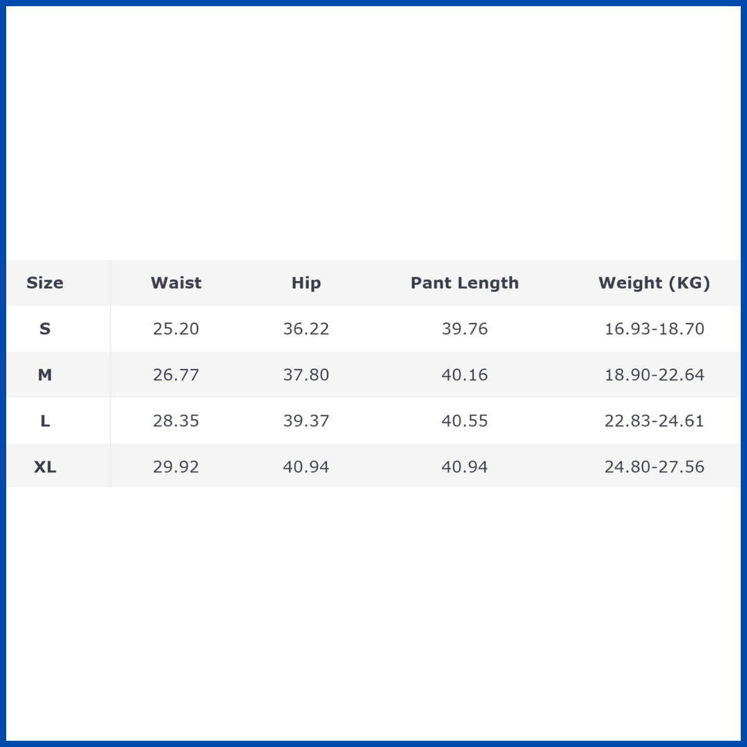 | XS | 0 | 78.7-81.2 | 60.9-63.5 |