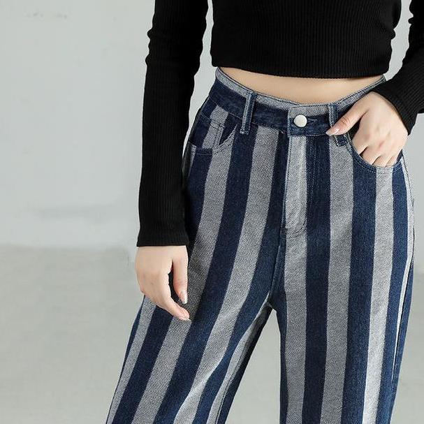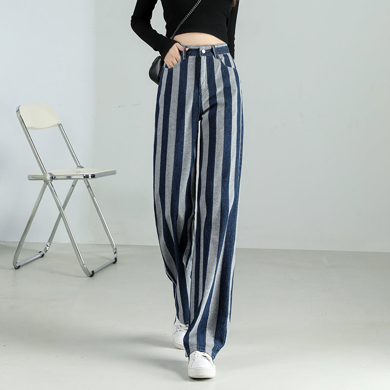 Our High Waist Vintage Stripe Print Cotton Jeans are more than just clothing; they are a statement of style and comfort. Their durable material and timeless design ensure they will be a favorite in your wardrobe for years to come. Embrace the blend of tradition and trend with these uniquely stylish jeans that stand out in a crowd.