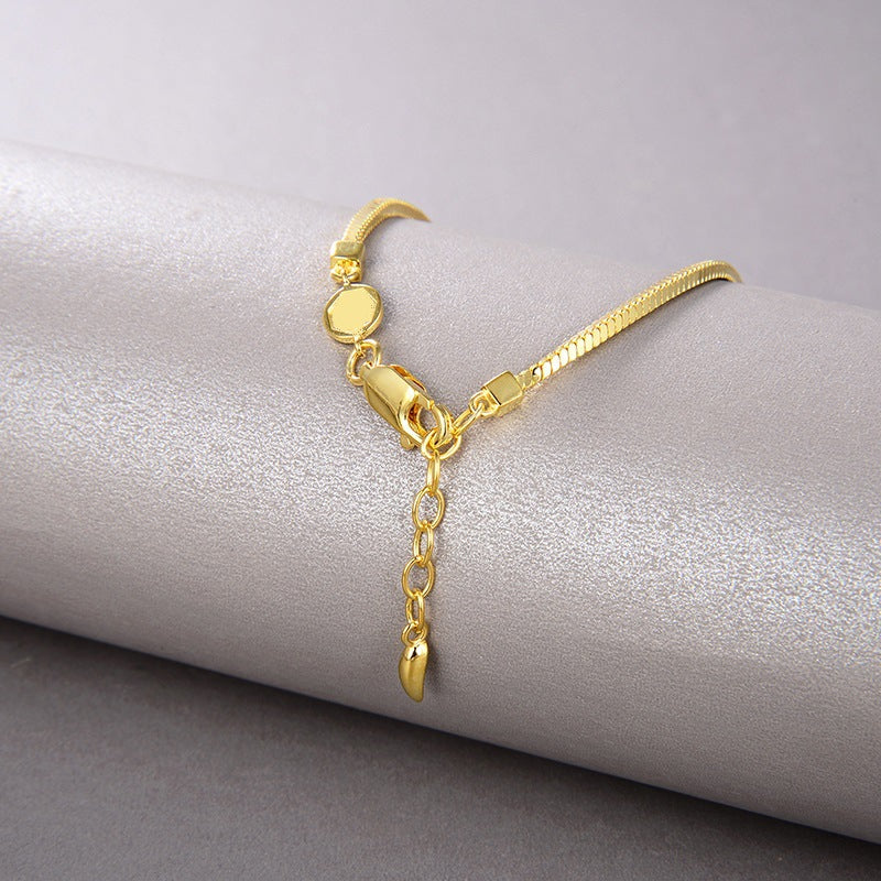 Simple Vintage Ins Folded Square Scaled Snake Bone Chain S925 Silver Plated 18k Gold Bracelet Female