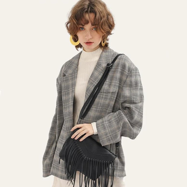 Introducing our latest addition to your fashion ensemble - the Vintage Tassel Fringe Boho Messenger Bag. Merging the essence of bohemian flair with practical elegance, this bag is an essential accessory for the modern, environmentally-conscious woman. Crafted from high-quality vegan leather, it's a testament to style and sustainability.Timeless Design Meets Modern Practicality