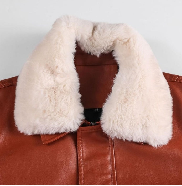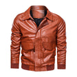 Thin Men's Lapel Large Pocket Pu Leather Jacket Large Size Motorcycle Washed Leather Jacket