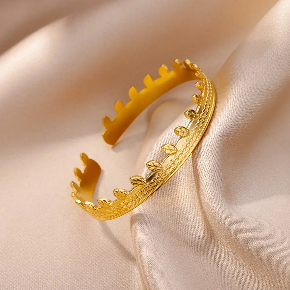 Gold Stainless Steel Vintage Cuff Bracelet - Elegant Wrist Jewelry