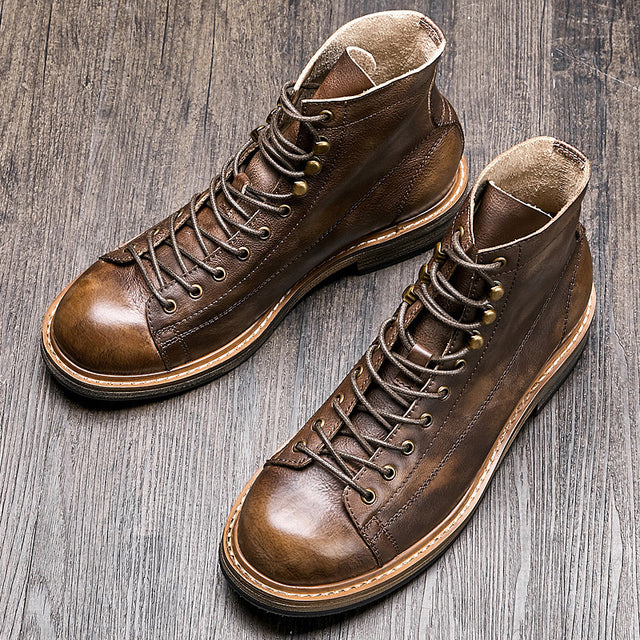 Men's Summer High Top Leather Vintage Leather Martin Boots