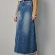Express yourself with the freedom this skirt provides. Whether paired with a casual tee for a relaxed vibe or dressed up with a chic blouse, the Denim Elegance Maxi Skirt effortlessly adapts to your unique style.