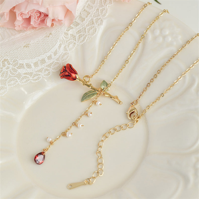 French Vintage Red Necklace Clasp Chain - Rose is backordered and will ship as soon as it is back in stock.