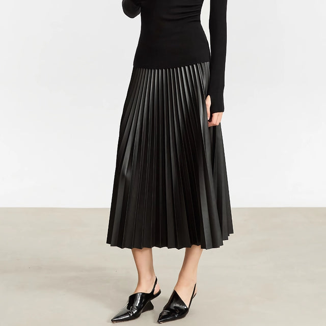 Minimalist A-Line Pleated Leather Skirt for Women