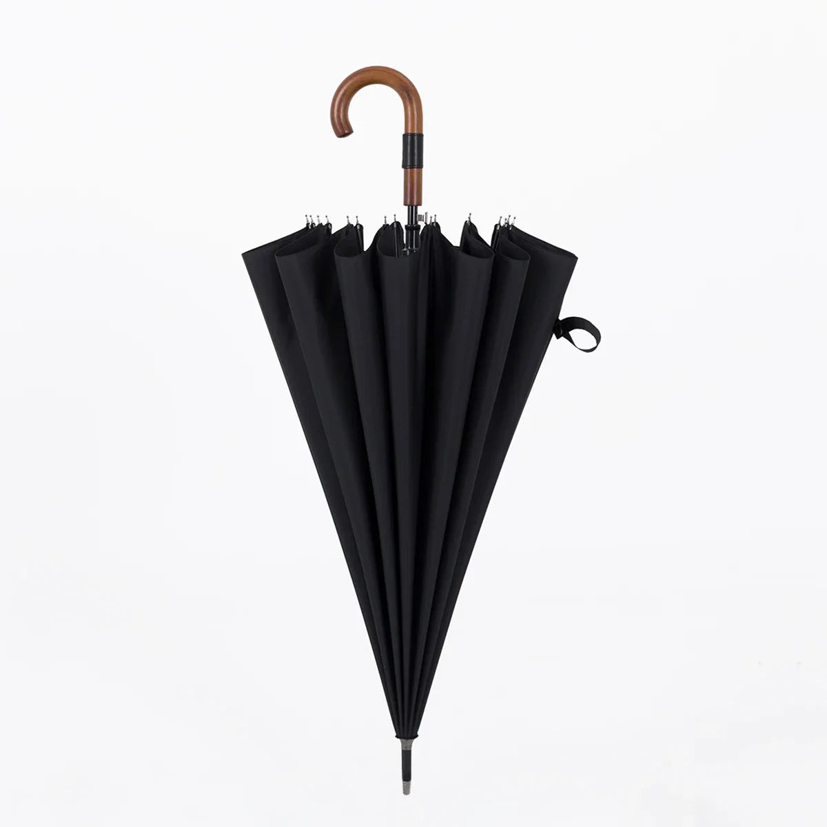 Windproof Long-Handle Umbrella - 16 Ribs, Wooden Handle, 120cm Diameter