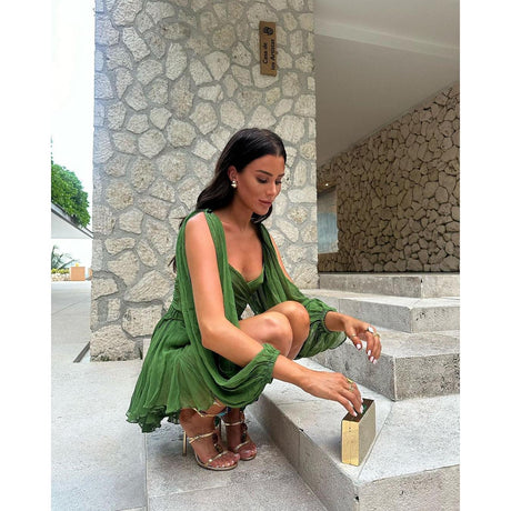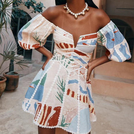 Regular price $79.99 USDUnit price /UnavailableElegant V-Neck Mini Dress with Lanter...