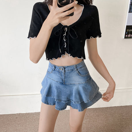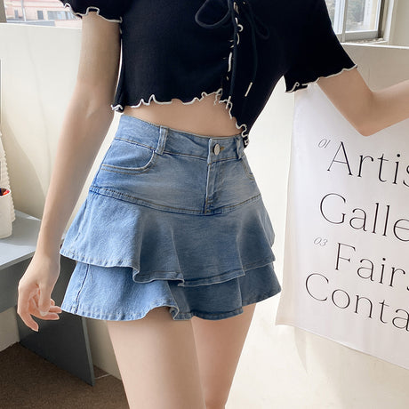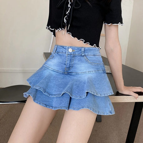 Regular price $37.99 USDUnit price /UnavailableTrendy Layered Denim Mini Skirt with ...