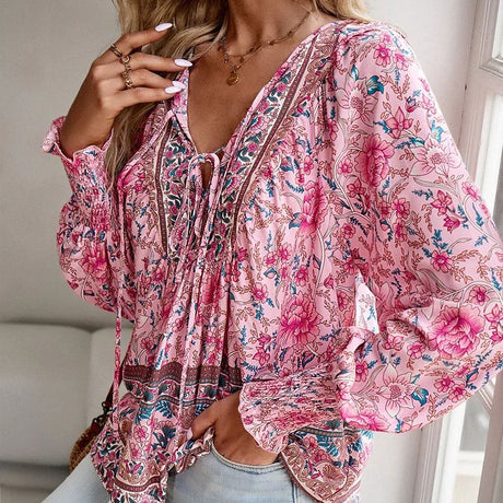 Regular price $23.99 USDUnit price /UnavailableBohemian V-neck Long Sleeve Top for W...