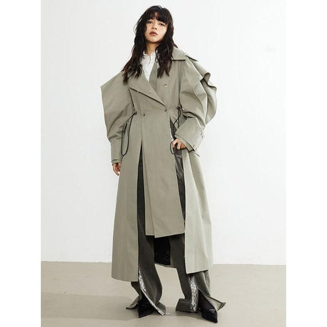 Regular price $212.99 USDUnit price /UnavailableGray Blue Bat Sleeve Trench Coat with...