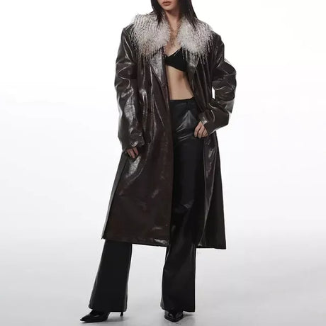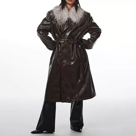 PU Leather Overcoat with Detachable F...