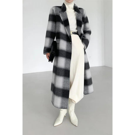 Regular price $404.99 USDUnit price /UnavailableElegant Plaid Double Breasted Long Wo...