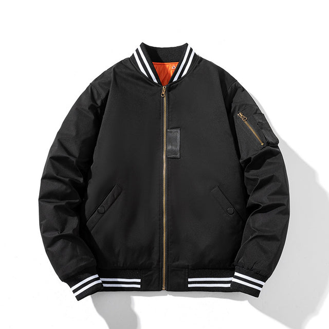 American Street Fashion Hooded Jacket Solid Color Printing Embroidered Baseball Uniform - Black With Cotton Lining / M is backordered and will ship as soon as it is back in stock.