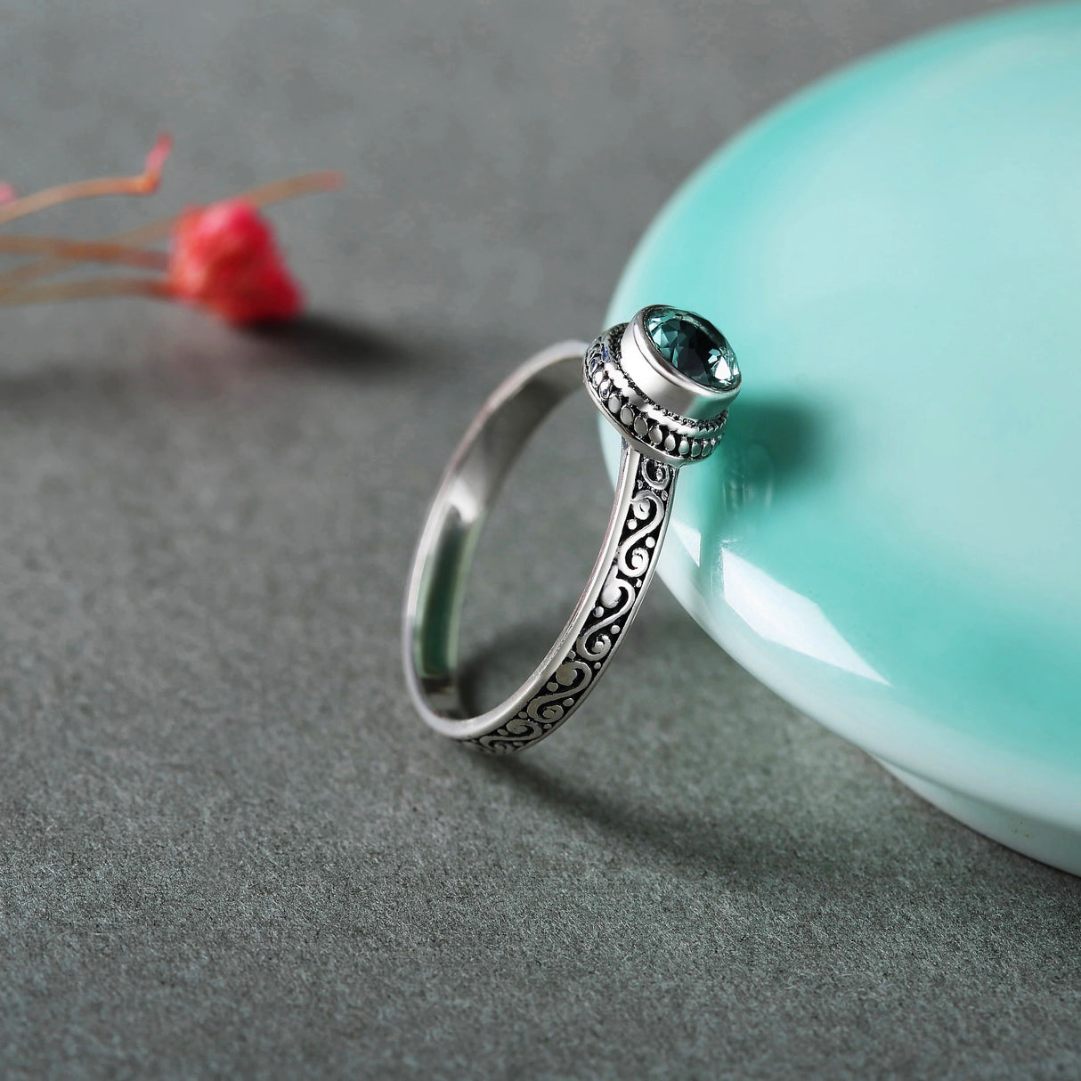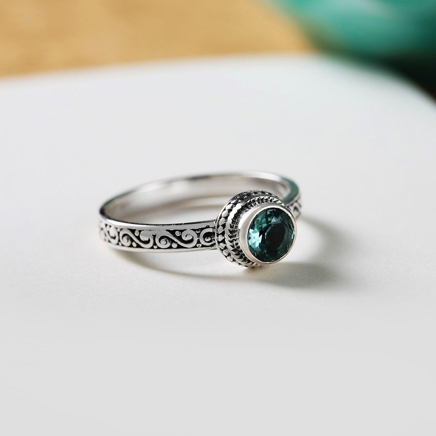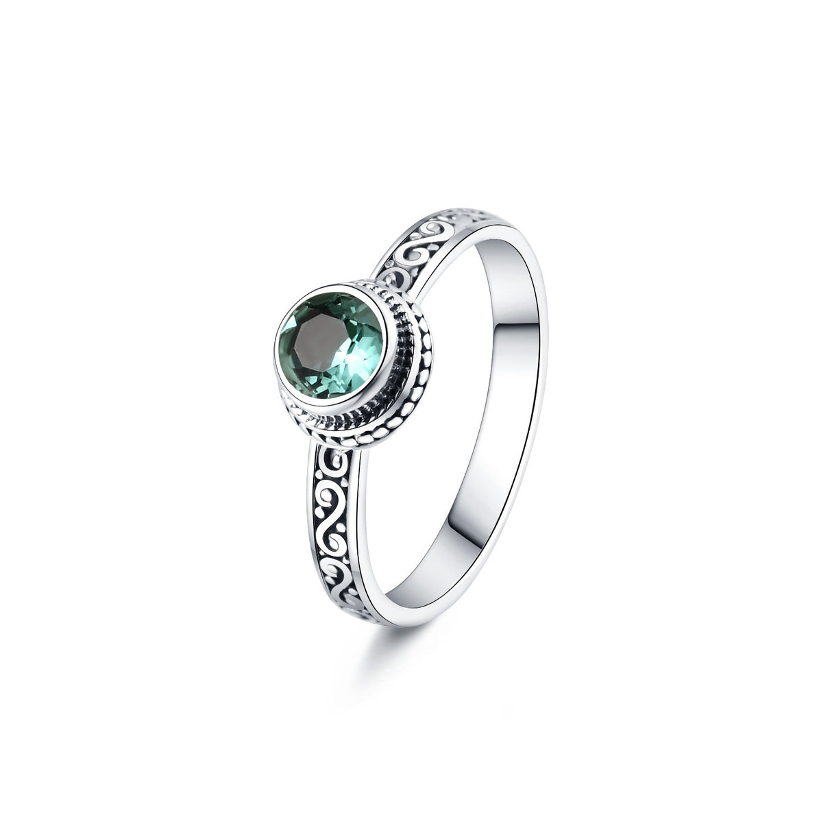 S925 Silver Vintage Ring Round Green Crystal Inlaid