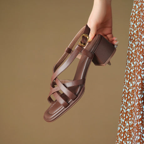 Regular price $126.99 USDUnit price /UnavailableStrappy Leather Low Heel Sandals