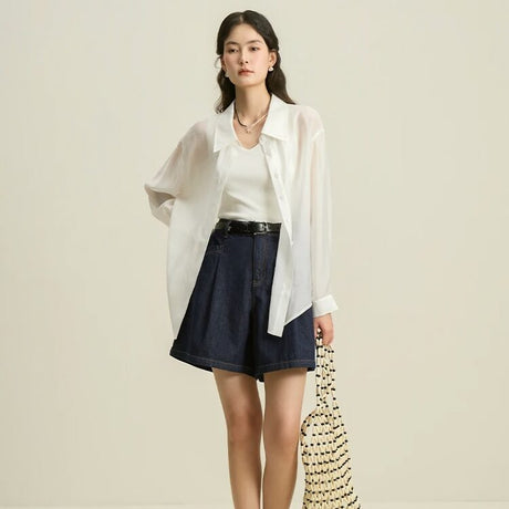 - Dark Denim Blue High Waist Loose Shorts Regular price $94.99 USDUnit price /Unavailable