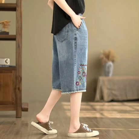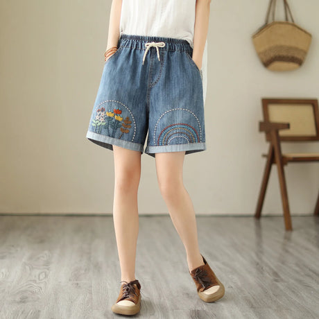 - Floral Embroidered Denim Harem Shorts Regular price $68.99 USDUnit price /Unavailable