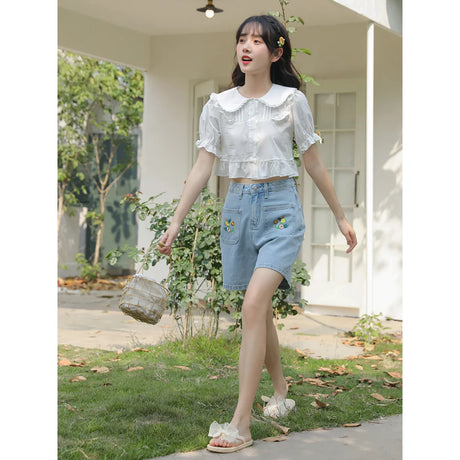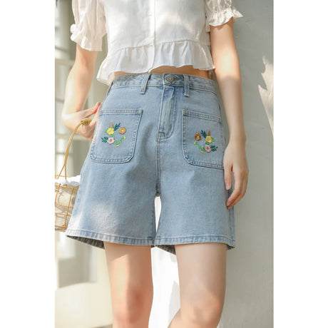 - Light Blue Embroidered Denim Shorts f... Regular price $64.99 USDUnit price /Unavailable