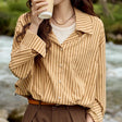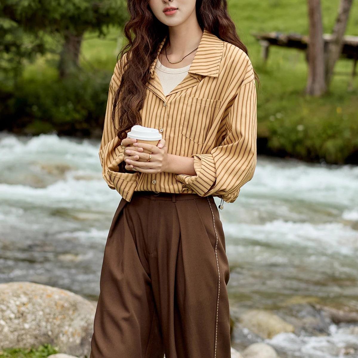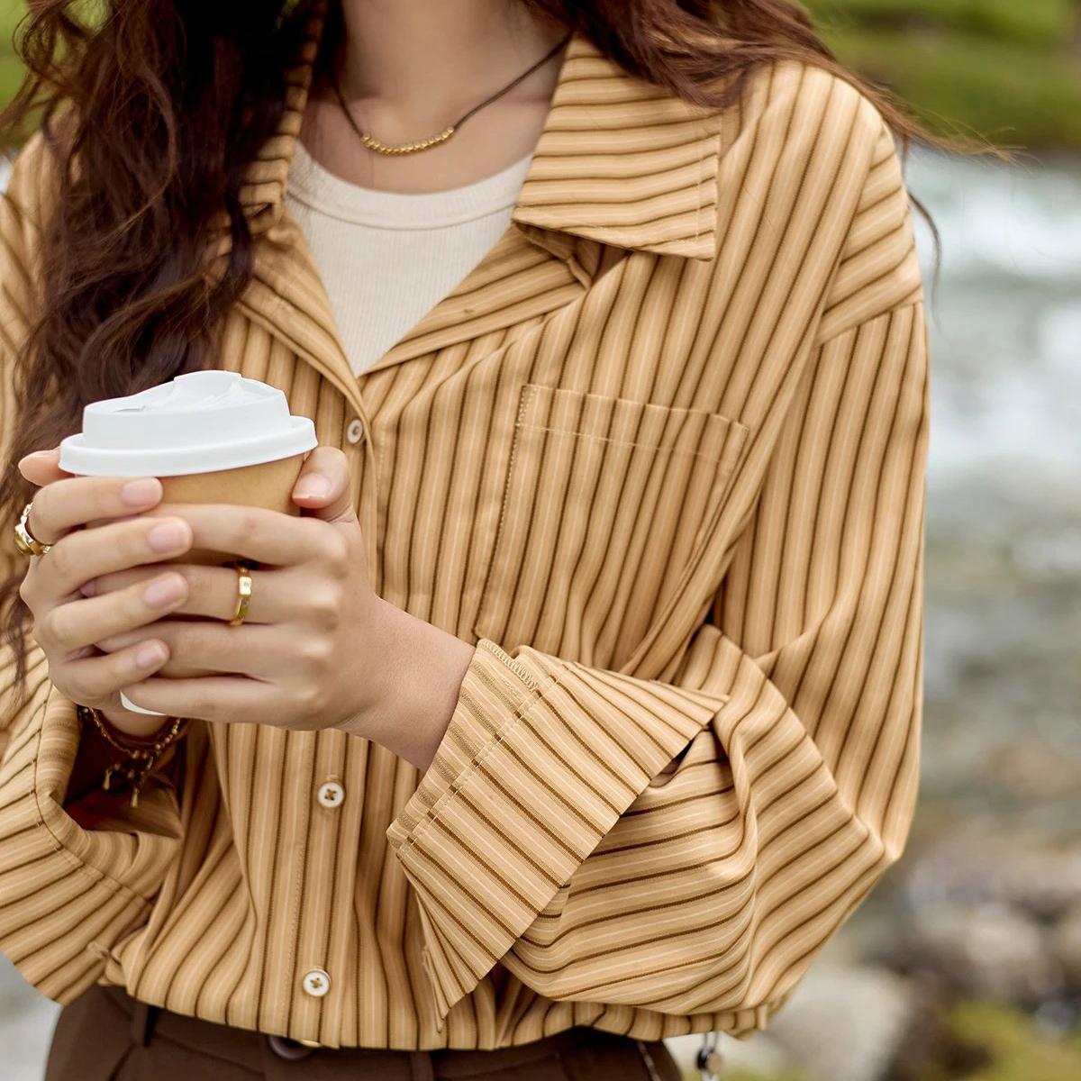 Werten Sie Ihre Herbst- und Wintergarderobe mit diesem stilvollen, leicht zu tragenden Stück auf. Das asymmetrisch gestreifte Reverskragen-Spleißenhemd ist die perfekte Mischung aus modernem Design und zeitlosem Stil. Egal, ob Sie es für das Büro schick machen oder es am Wochenende lässig tragen, dieses vielseitige Hemd wird schnell zu Ihrem Lieblingshemd. Fügen Sie es noch heute Ihrer Sammlung hinzu!