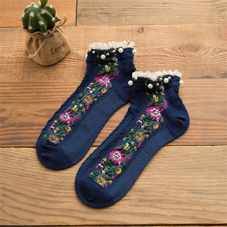 Normaler Preis CHF 18.00Grundpreis /Nicht verfügbarRetro Lolita Blumen Perlen Knöchelsocken