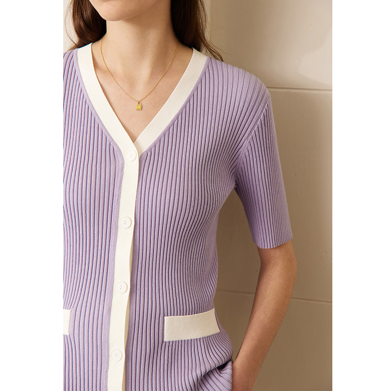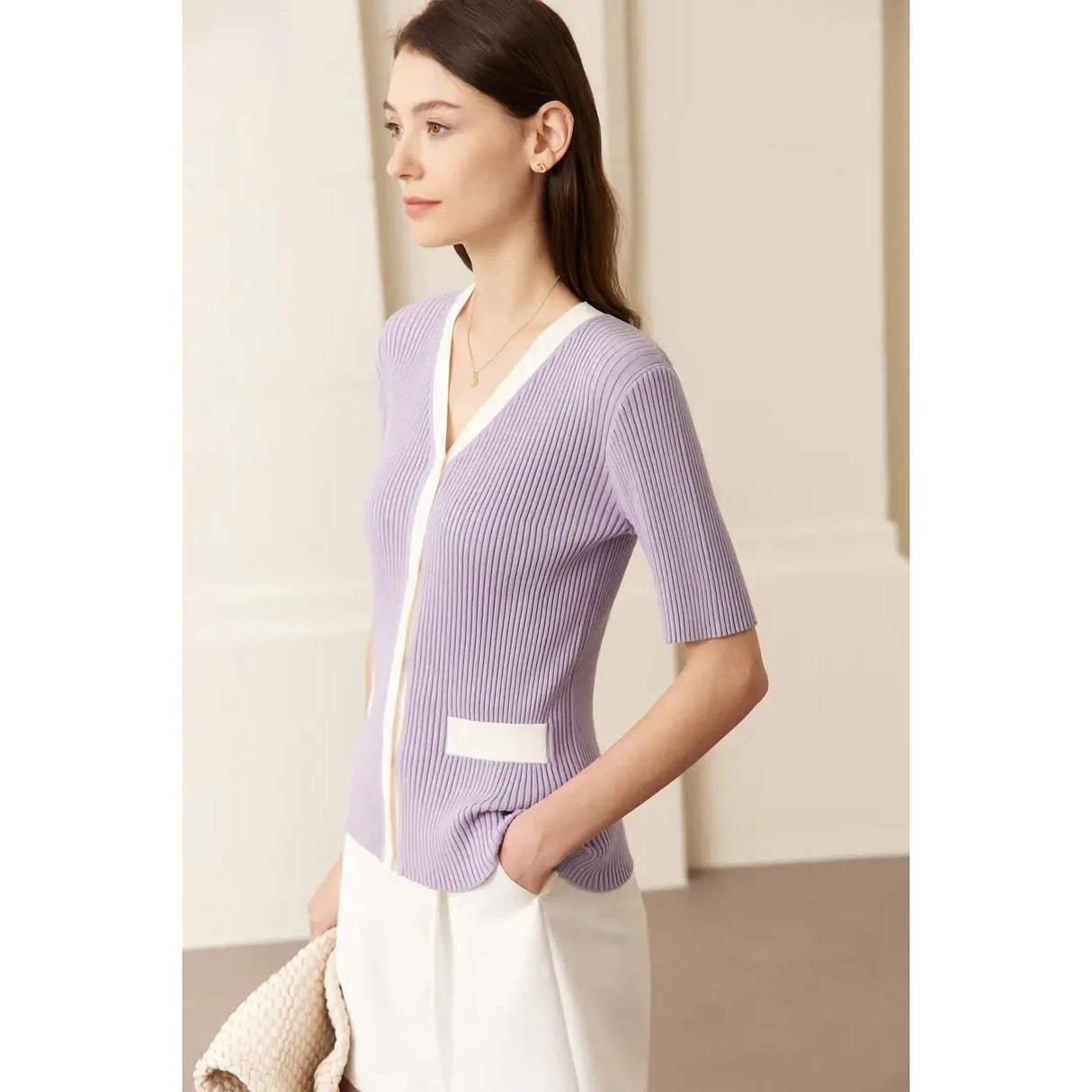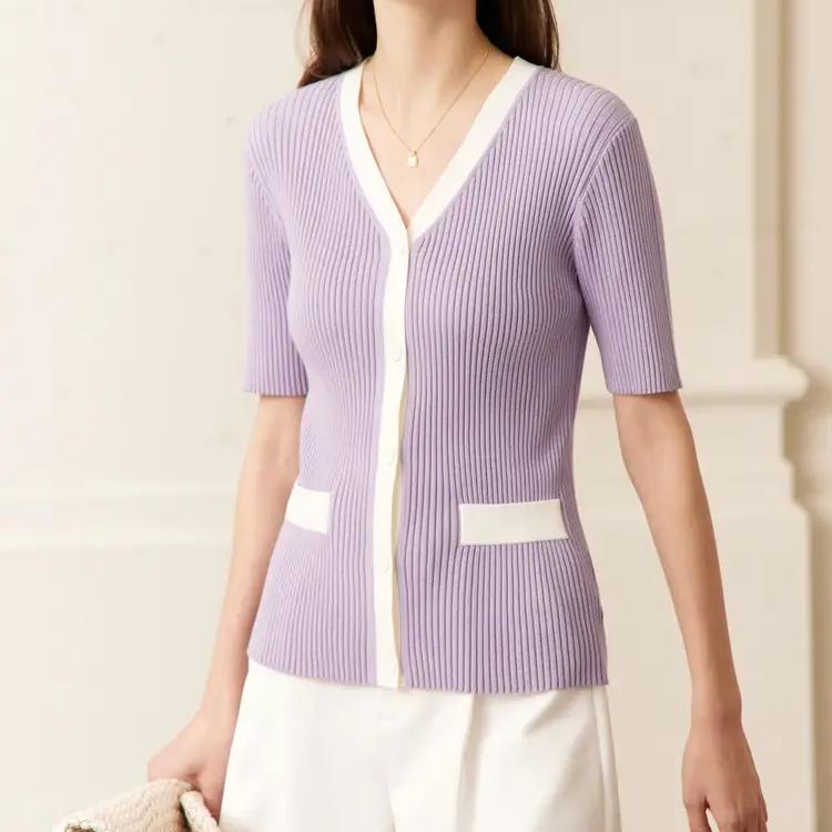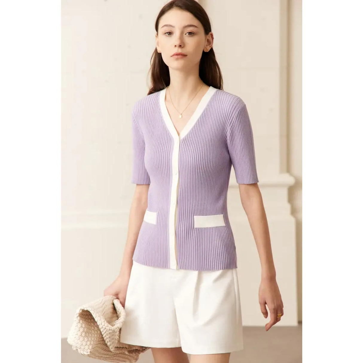 Erleben Sie Eleganz und Komfort mit unserem Sommer-Strickcardigan mit V-Ausschnitt für Damen. Dieser Cardigan verbindet Vintage-Charme perfekt mit modernem Minimalismus und ist ein Muss für Ihre Sommergarderobe. Sein Paneeldesign und die schmale Passform sorgen für eine schmeichelhafte Silhouette, während der V-Ausschnitt einen Hauch von Raffinesse verleiht. Egal, ob Sie ins Büro gehen oder einen lässigen Tag verbringen, dieser All-Match-Cardigan sorgt dafür, dass Sie mühelos schick aussehen.Produkteigenschaften