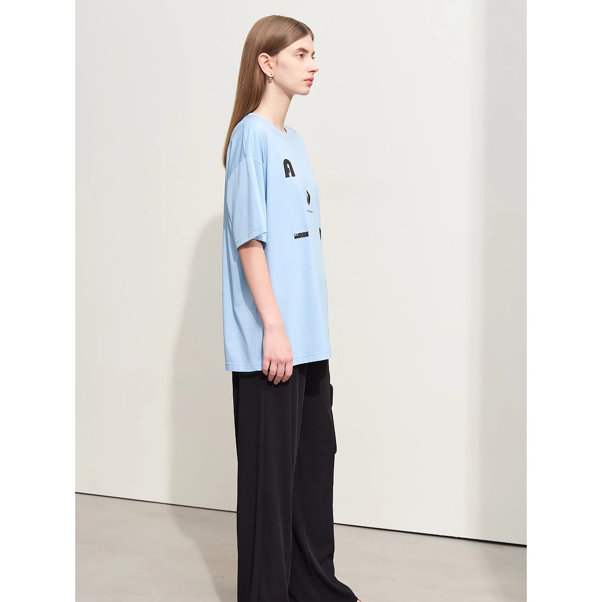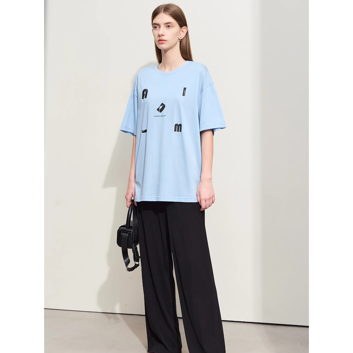 Minimalistisches Kurzarm-Pulloveroberteil mit Buchstaben-Aufdruck für Damen - M / Eisblau ist auf Lager und wird versandt, sobald es wieder verfügbar ist