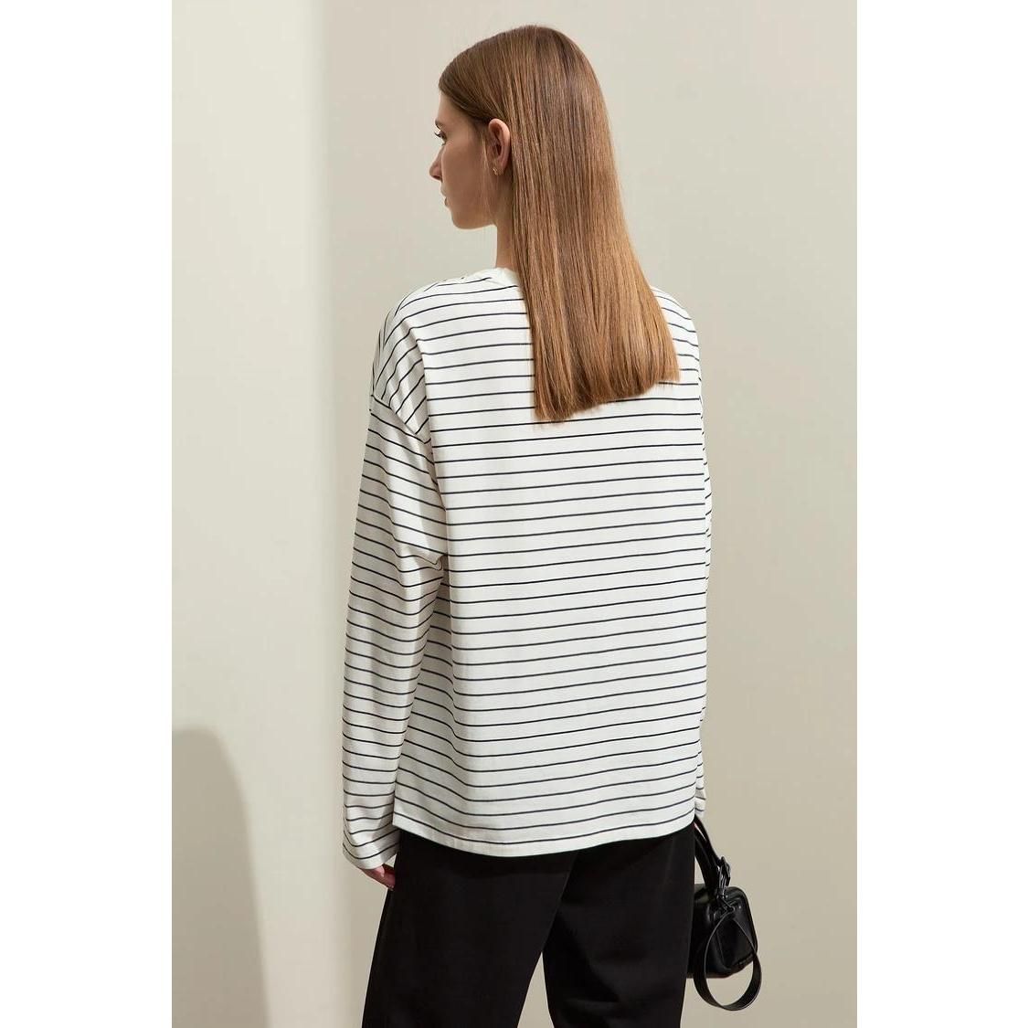 Erleben Sie die perfekte Mischung aus Komfort und Stil mit unserem lässigen, gestreiften Baumwoll-T-Shirt. Dieses trendige T-Shirt verleiht Ihrer Alltagsgarderobe einen Hauch französischen Minimalismus. Egal, ob Sie Besorgungen machen, Freunde treffen oder einen entspannten Tag zu Hause genießen, dieses T-Shirt ist Ihre erste Wahl für einen schicken, lässigen Look.