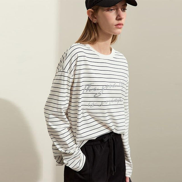 Lässiges gestreiftes Baumwoll-T-Shirt