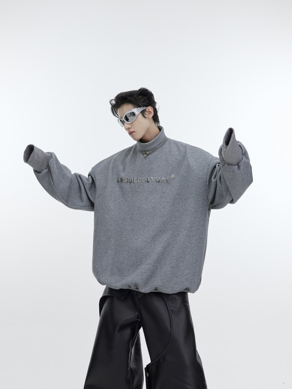 Design-inspirierter Pullover mit Stehkragen und Schulterpolstern