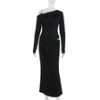 Schmal geschnittenes Plisseekleid mit schrägen Schultern und ausgehöhlten Ärmeln für Damen - Schwarz / S ist auf Lager und wird versandt, sobald es wieder verfügbar ist