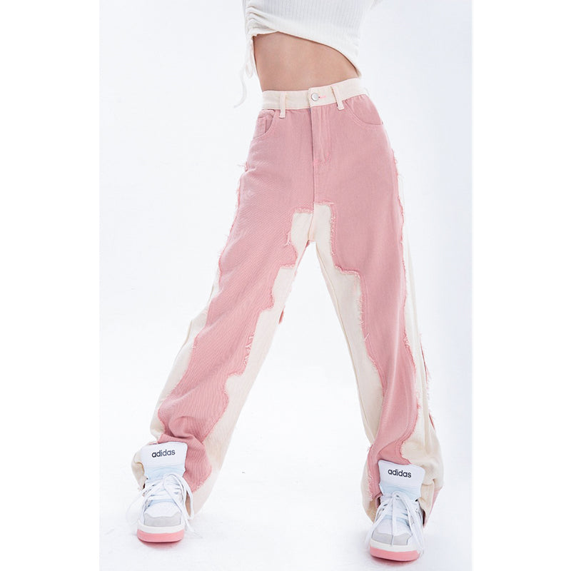 Rosa Jeans mit hoher Taille und weitem Bein