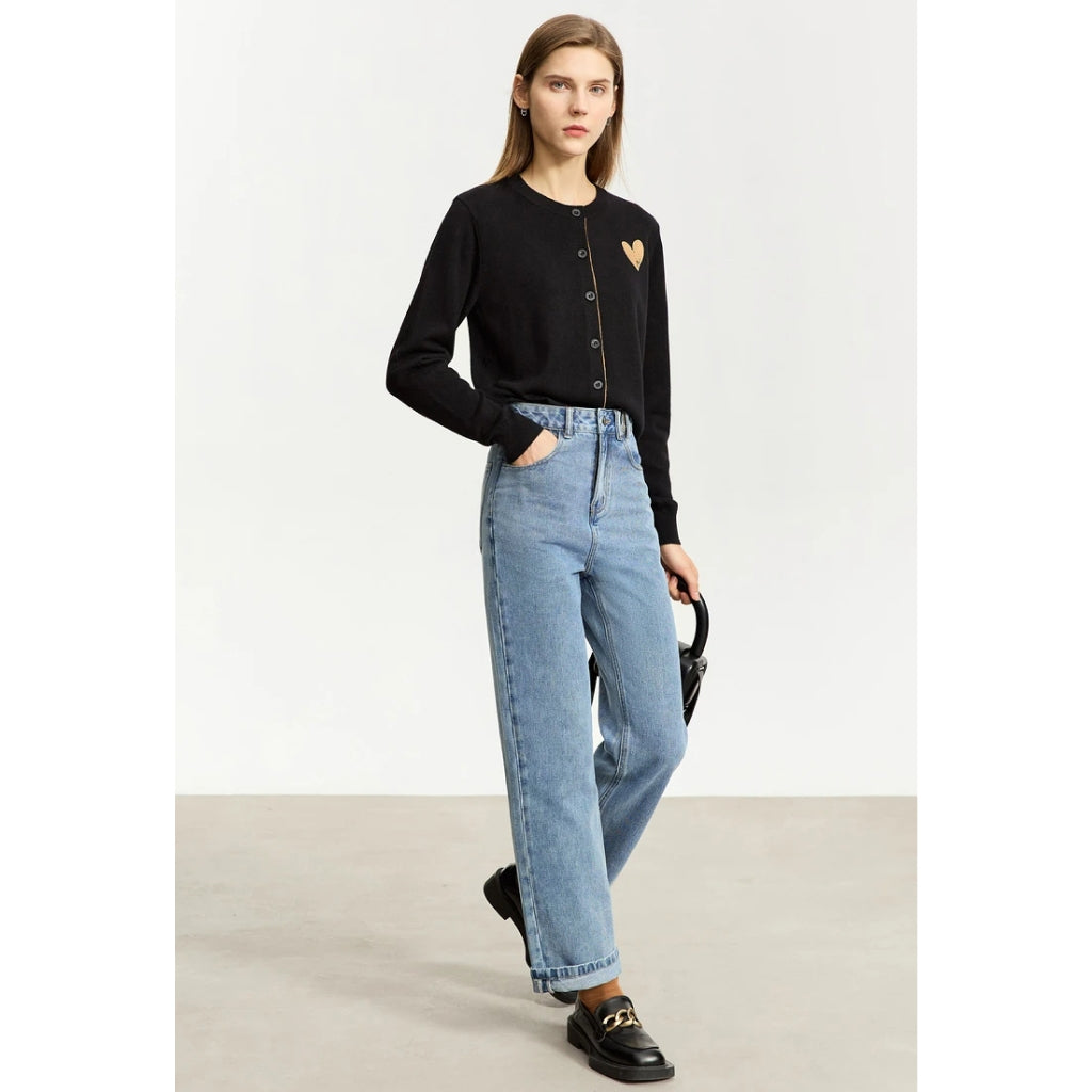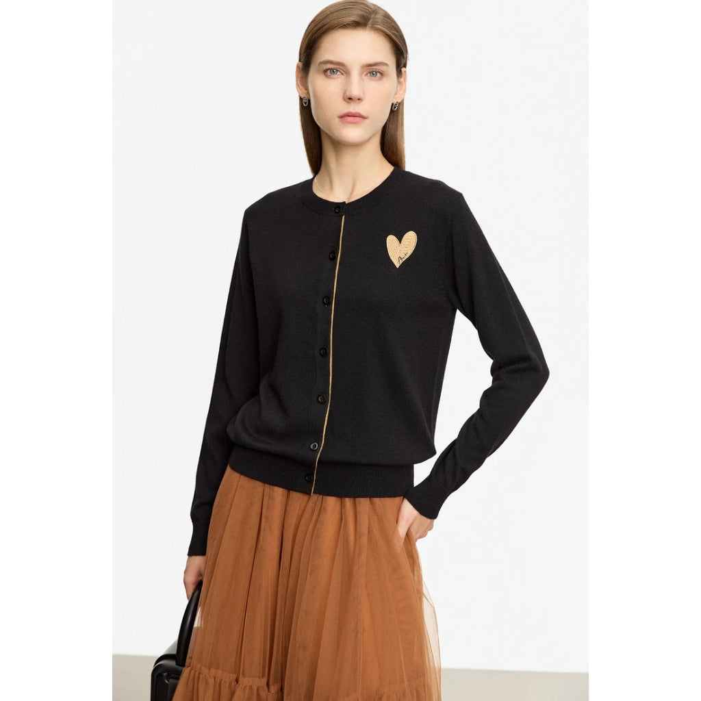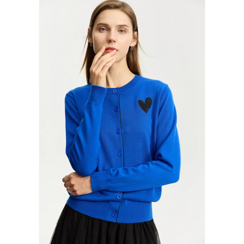 • Einzigartiges Design: Die Liebesstickerei fügt ein zartes und charmantes Detail hinzu, das diese Strickjacke auszeichnet.
