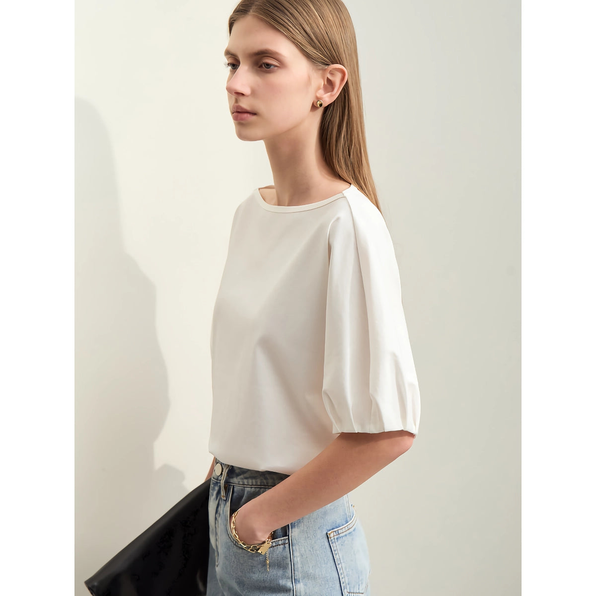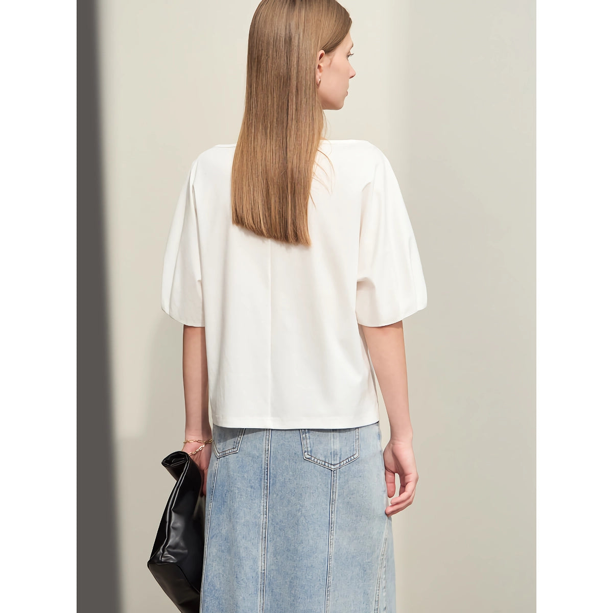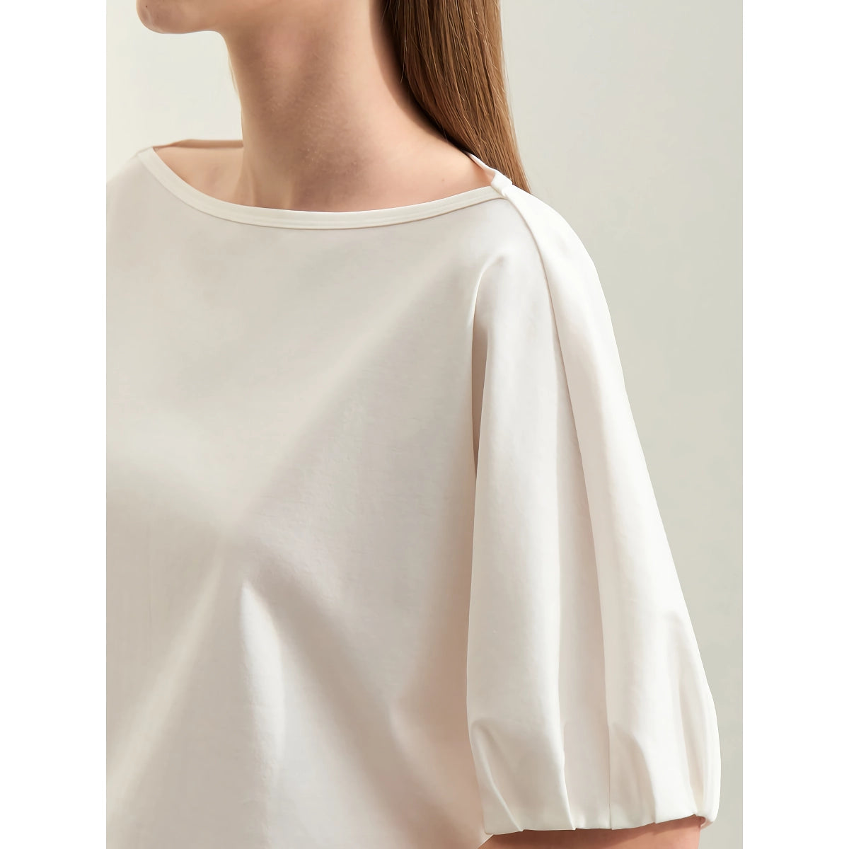 Minimalistisches Damen-T-Shirt aus Baumwolle mit Laternenärmeln