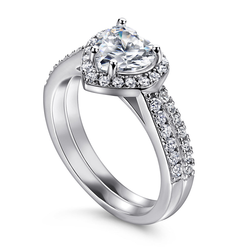 Modischer herzförmiger Kombinationsring aus 925er Sterlingsilber für Damen