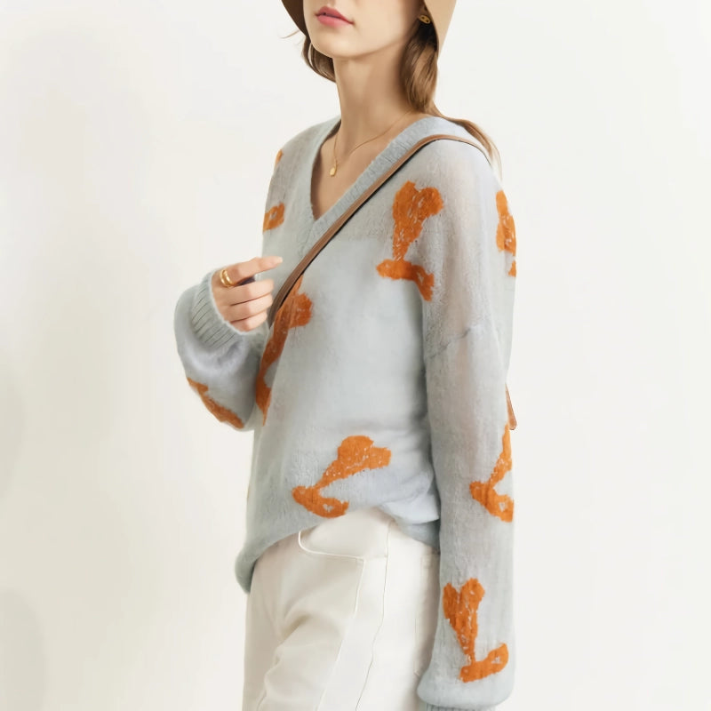 Herbstlicher Jacquard-Pullover aus Mohair mit V-Ausschnitt