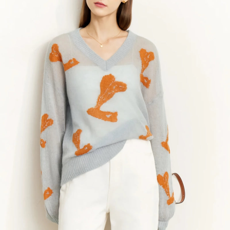 Erleben Sie die perfekte Mischung aus Stil und Komfort mit diesem locker sitzenden Pullover. Die leichte Dehnbarkeit ermöglicht leichte Bewegungen, während die langen Ärmel für zusätzliche Wärme sorgen. Das V-Ausschnitt-Design verleiht einen Hauch von Eleganz und macht ihn sowohl für das Büro als auch für legere Ausflüge geeignet. Das einzigartige Liebesmuster und die Blumenverzierungen lassen diesen Pullover hervorstechen und sorgen dafür, dass Sie schick und trendig aussehen.Wann zu tragen