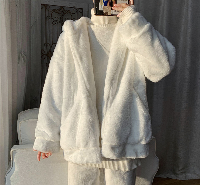 Modischer, schlichter Mantel aus Lammkaschmir-Baumwolle in reiner Farbe - Weiß / M ist auf Lager und wird versandt, sobald es wieder verfügbar ist