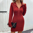 Europäische und amerikanische gedrehte Damen-Strickkleid mit Stehkragen und Reißverschluss, halbe Strickjacke - Rot / S ist auf Lager und wird versandt, sobald es wieder verfügbar ist