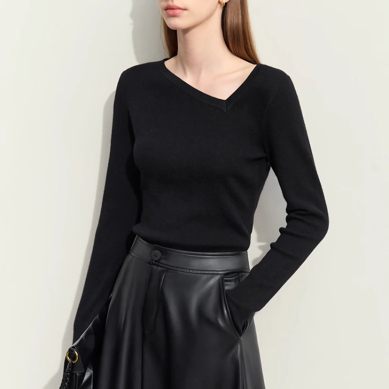 Vorteile des asymmetrischen, diagonalen V-Ausschnitt-Slim-Pullovers für den Herbst