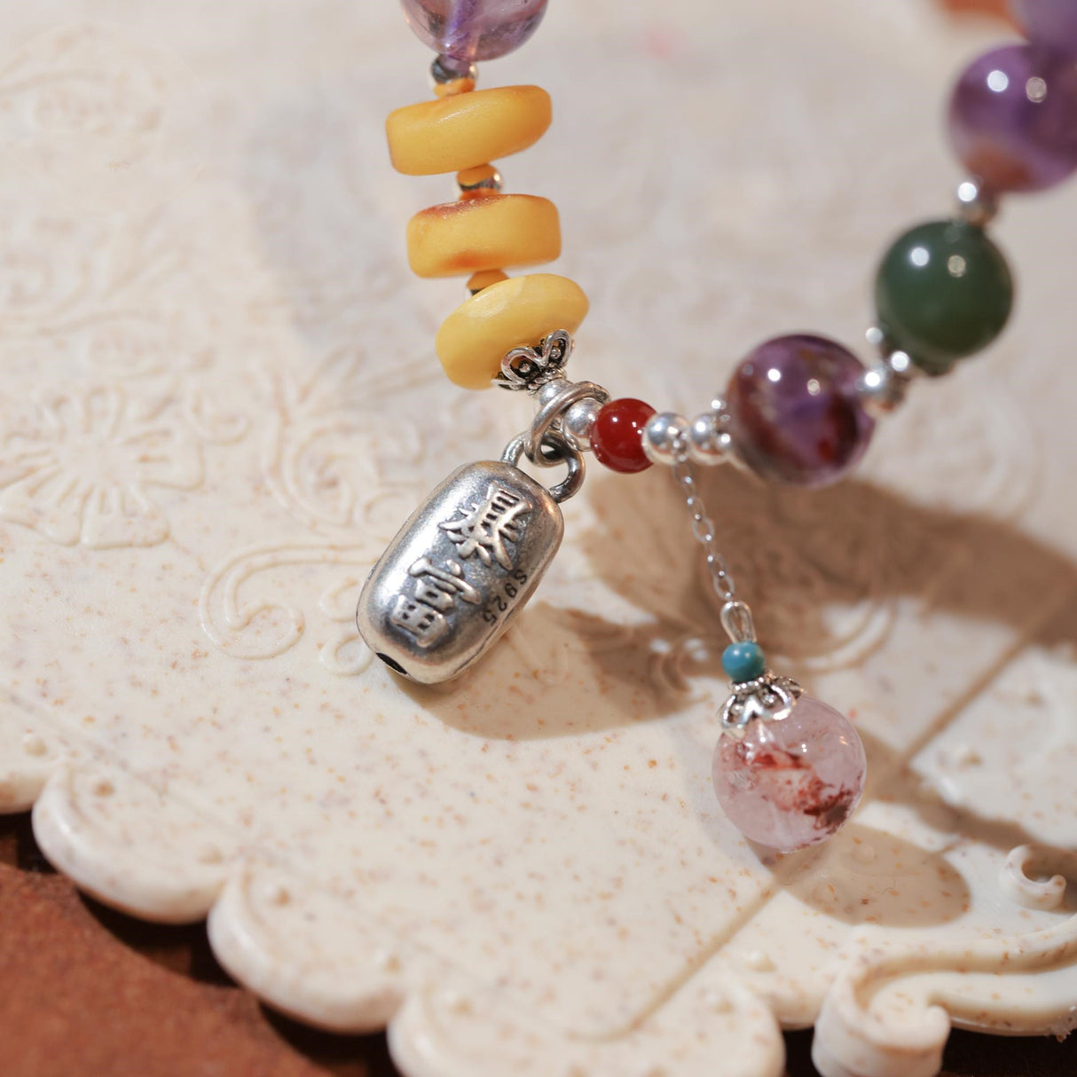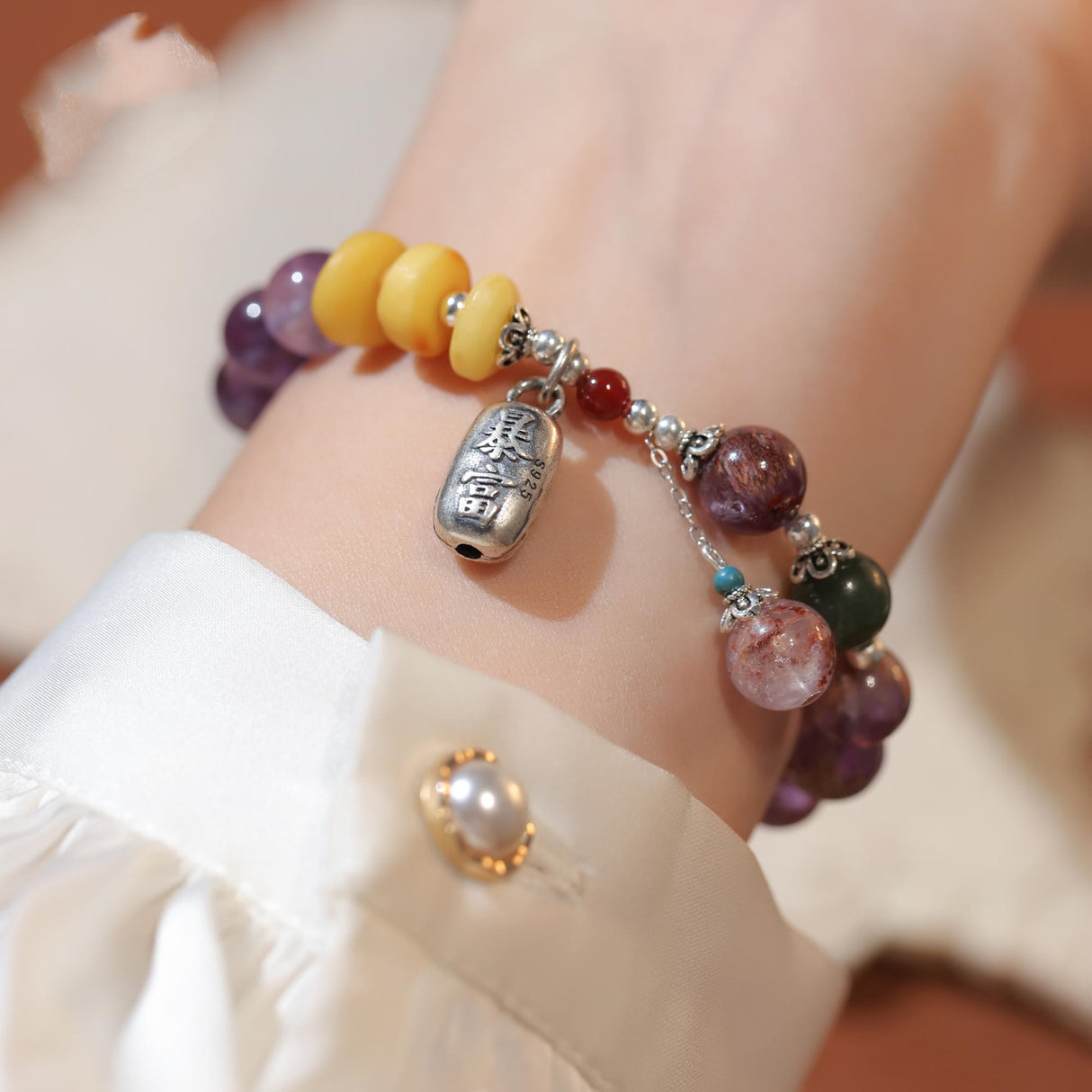 Natürliche Amethyst-Kristallschnur mit Anhänger „Unverschämter Reichtum“.