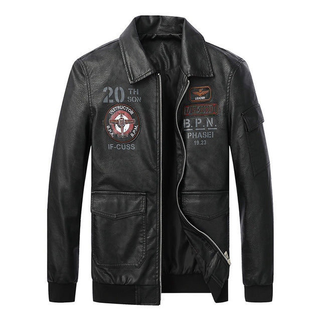 Lässige Lederjacke für Herren mit Revers und Stickerei