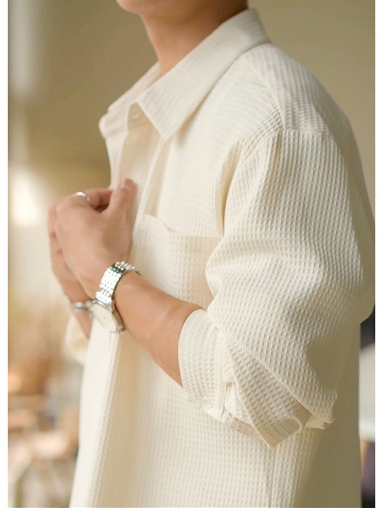 Waffel-Polokragenjacke, lässiges, lockeres Herrenhemd