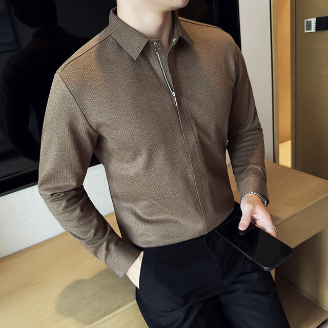 Nahtloses, elastisches Slim Fit-Langarmhemd mit Streifen und Reißverschlussdesign