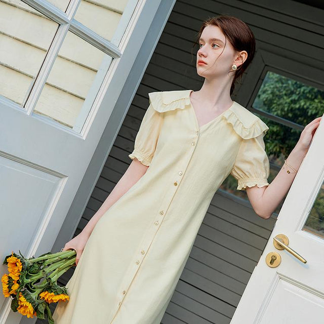 • Kurze Ärmel mit Pilzkanten: Feine Details, die für ein feminines und weiches Aussehen sorgen.