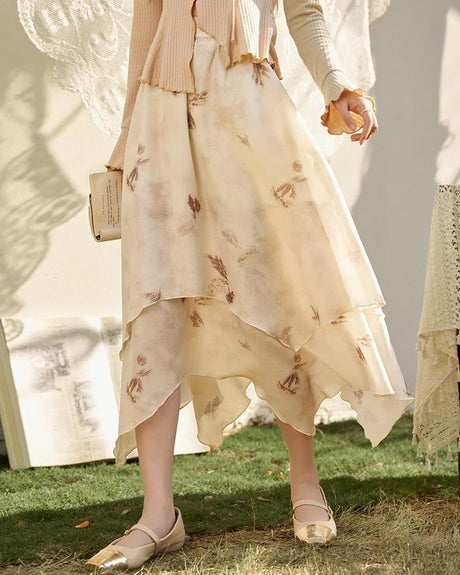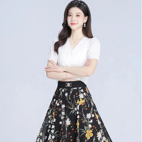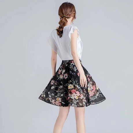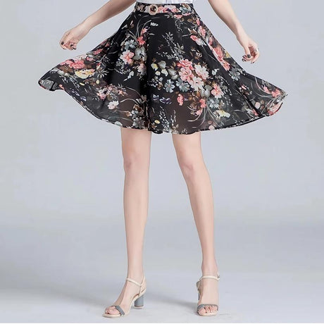 A-Linien-Rock aus Chiffon mit Blumenm...